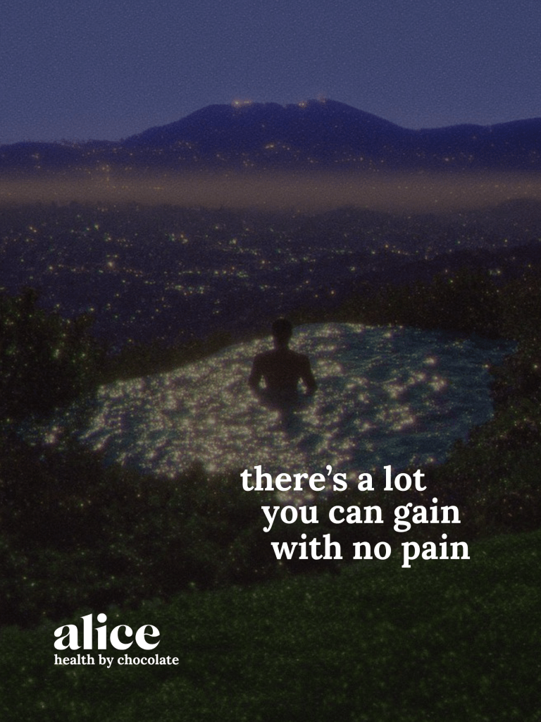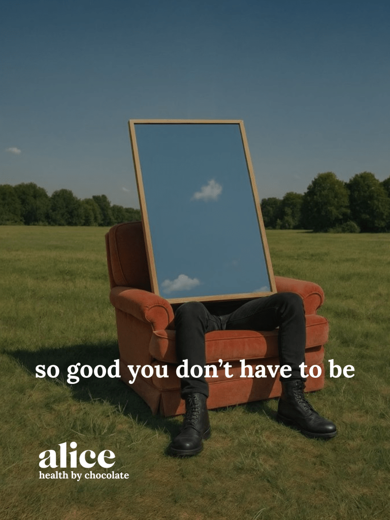 Wellness can hurt. 5am workouts. 6am cold plunges. Tracking calories, sleep scores and steps. No wonder some people treat their wellness like they hate it. Not Alice. Alice believes wellness isn’t about being perfect. Because you don’t need to be perfect to be well. In her world, wellness is a whole lot easier and tastier with a touch of sweet whimsy. With all the potent supplements you need in a single bite of delicious, organic chocolate, Alice makes wellness feel like magic.